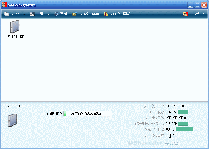 NASNavigator2を起動する。